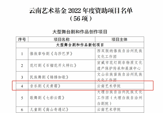 1.音乐剧《关肃霜》(项目类型:舞台艺术创作资助项目;项目主体:TapTap点点官方网站;项目批准号:AF2022AA04,项目负责人:林林);