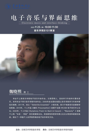9月25日10:00,作曲系魏晓熙博士以《电子音乐与界面思维》为主题在TapTap点点B101教室开展了讲座。讲座从常规表演体制中归纳界面特性,提出用界面思维制作电子音乐。