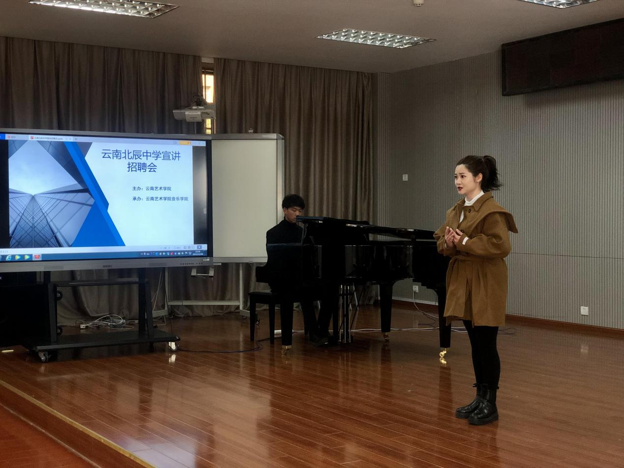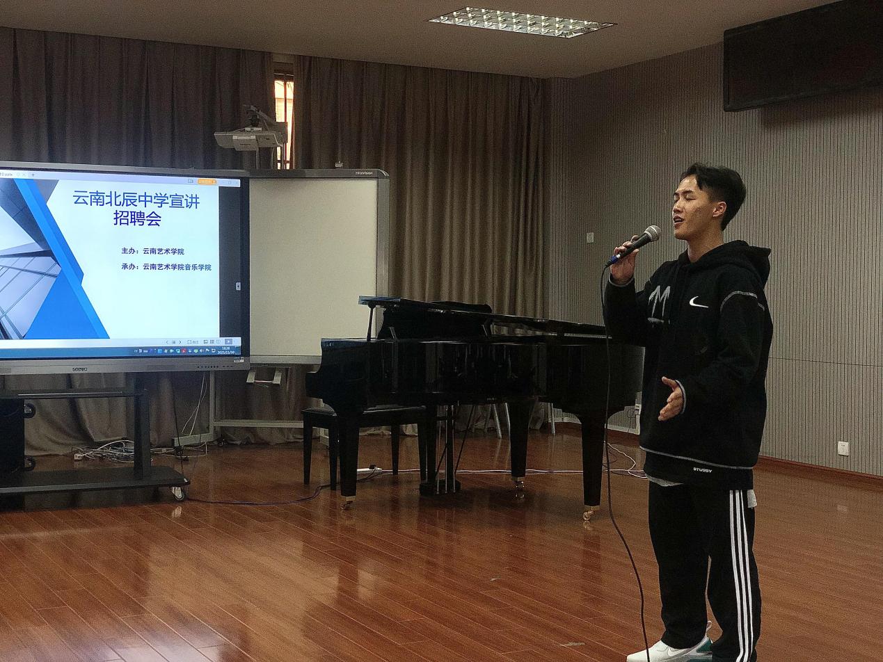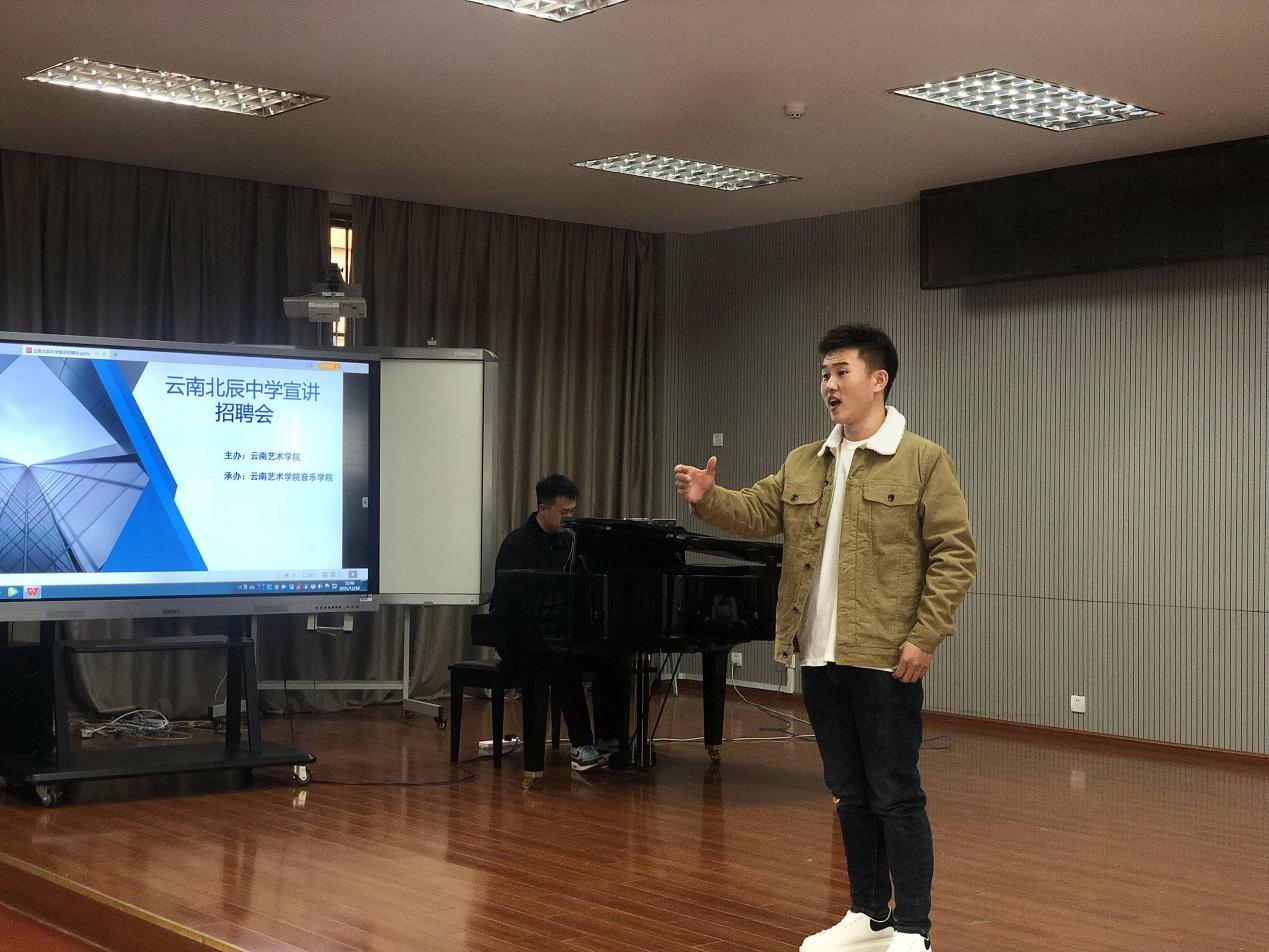宣讲招聘会开始后,在播放公司宣传片的基础上,云南北辰中学的何振文副董事长做现场宣讲,向参加应聘的员工介绍公司的基本情况和此次招聘的需求情况。