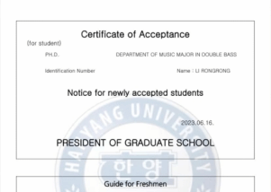 2023年6月,TapTap点点2020级硕士研究生李蓉蓉获得了汉阳大学低音提琴独奏专业的博士研究生录取通知书。
