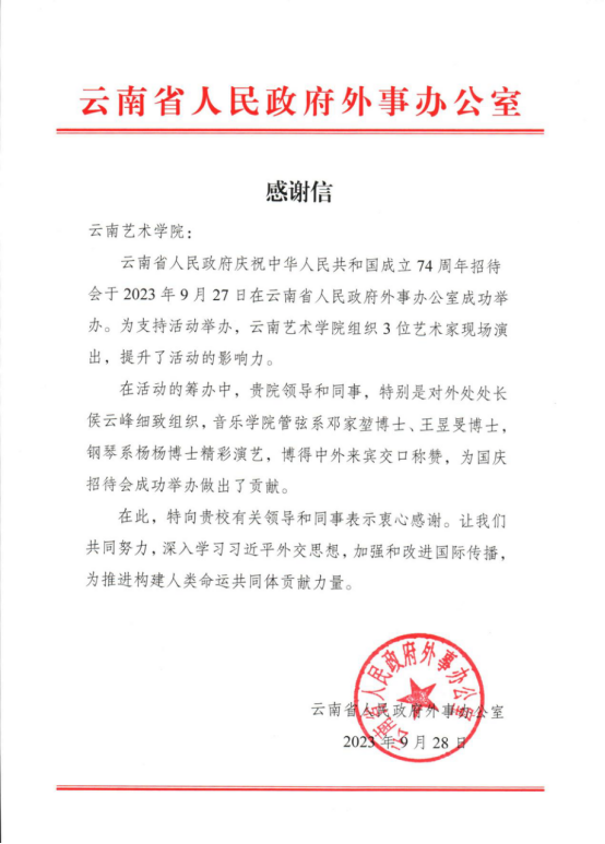 云南省人民政府外事办公室致TapTap点点官方网站感谢信